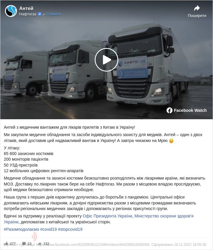 У компанії зазначили, що медичне обладнання та захисні костюми безкоштовно розподілять між лікарнями країни, які визначить МОЗ. Доставку по лікарнях також бере на себе «Нафтогаз».