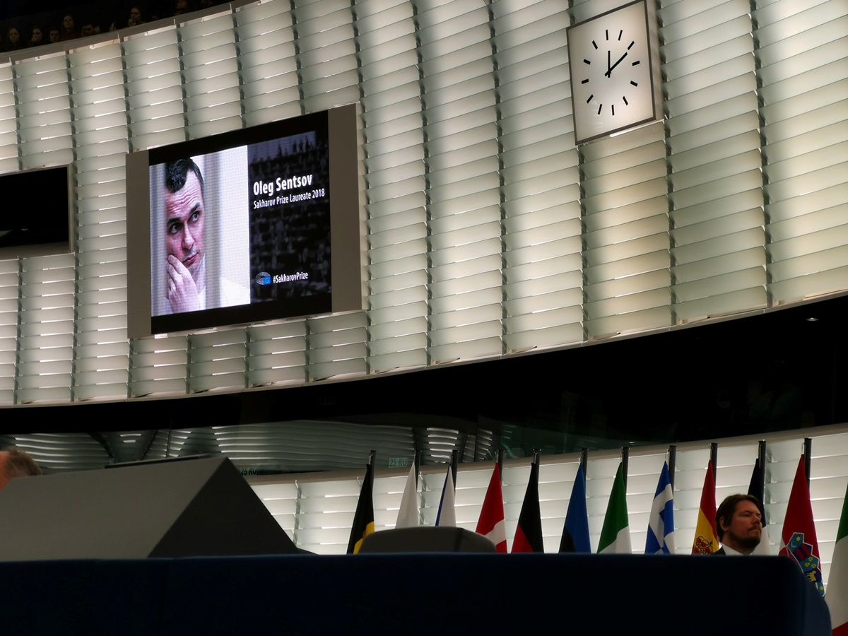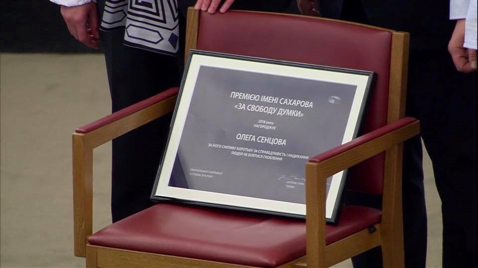 Церемонія нагородження премією імені Сахарова «За свободу думки» відбулася у Франції. 2018 року Європарламент надав нагороду українському режисерові Олегу Сенцову.