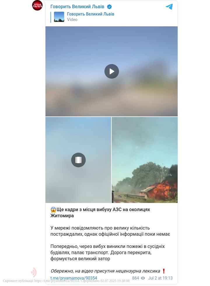 Нині на місці події працюють фахівці ДСНС, слідчо-оперативні групи ГУНП в Житомирській області та відділу поліції №1 Житомирського райуправління, патрульні поліцейські та медики.