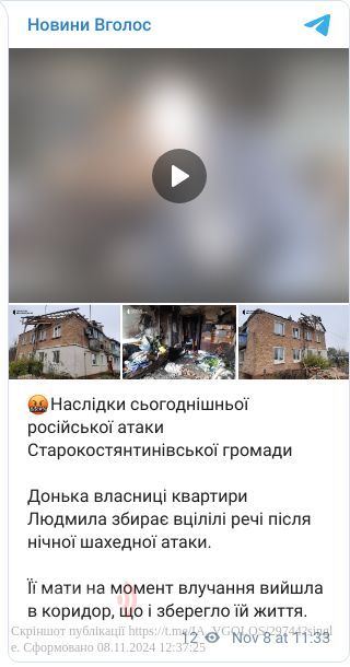 Сьогодні, 8 листопада, вночі на Хмельниччині лунали вибухи. Росія атакувала Україну ударними дронами.