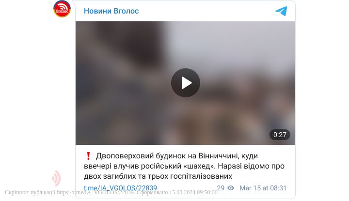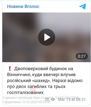 Місцева влада повідомила, що у Вінницькій області російський «Шахед» влучив у житловий будинок. Спочатку було відомо про трьох поранених людей, їх доправили у лікарню.