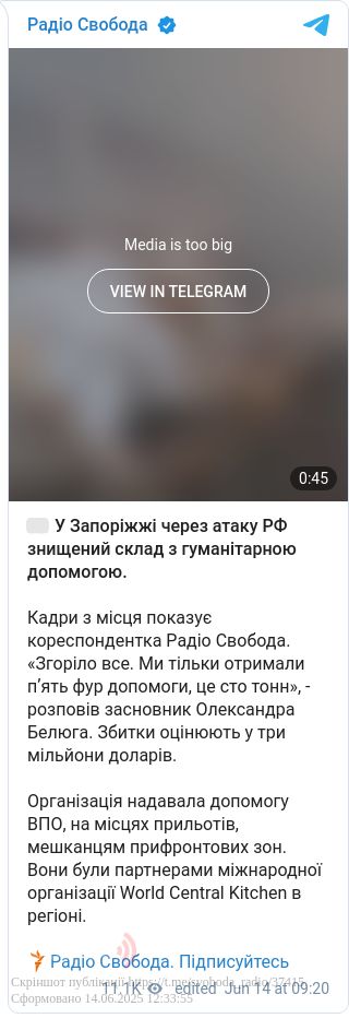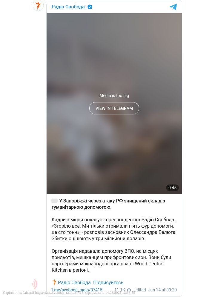 Російські окупанти вдарили по складу з гуманітарною допомогою у Запоріжжі в ніч на 14 червня. Збитки оцінили в 3 млн доларів.