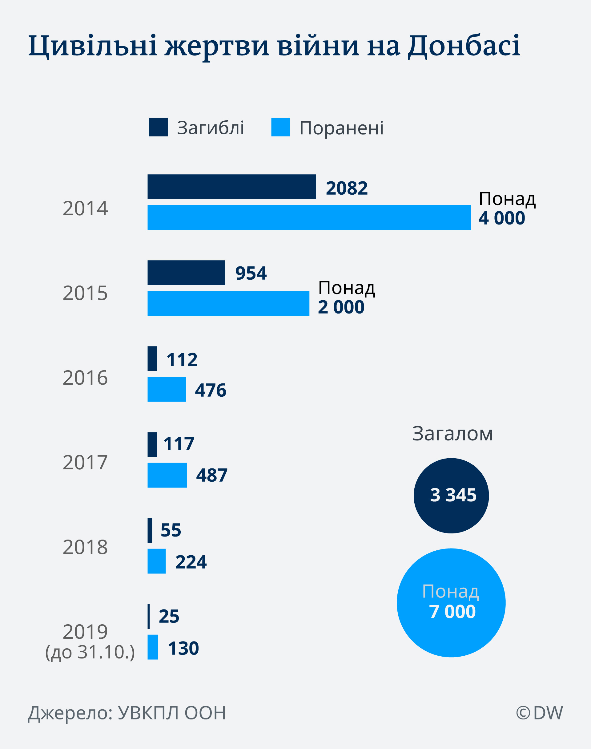 Станом на кінець жовтня понад 13 тисяч осіб загинуло унаслідок 5-річної війни на Донбасі. Відповідні дані озвучили в ООН, пише "DW" .