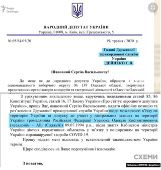 Зокрема народний обранець 19 травня 2020 року скерував депутатський запит до Державної прикордонної служби, у якому попросив роз’яснити можливість в’їзду виконавця на територію України та його виступів на наших теренах. Такий вчинок він пояснив тим, що його про це попросили організатори концертів і гастролей в Одеській області.