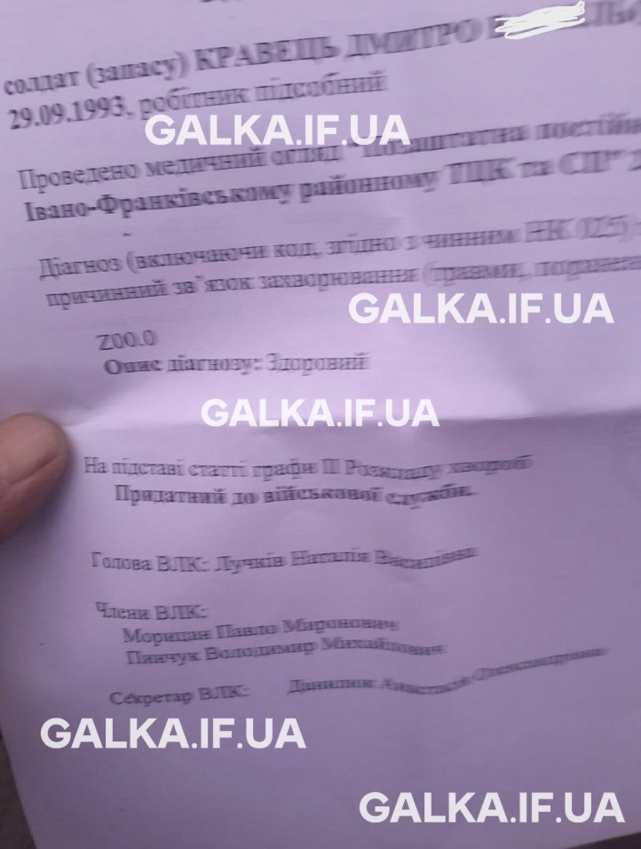 Попри критичний стан здоров’я, позаштатна комісія №2 при Івано-Франківському РТЦК визнала чоловіка повністю придатним. Весь процес огляду, за словами очевидців, тривав не більше трьох хвилин, після чого Дмитра силоміць вивезли до навчального центру на Львівщині.