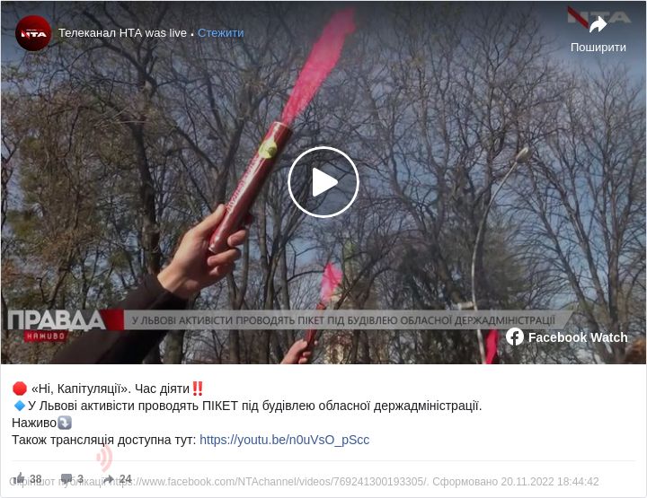 На акцію у Львові, яка, до слова, є всеукраїнською, зібралося понад 100 осіб. Вони прийшли із плакатами: «Ні – відведенню військ», “Ветерани проти здачі позицій”, “Зеленський, де дії?” та іншими, а також з вимогою «Ні капітуляції. Час діяти!».