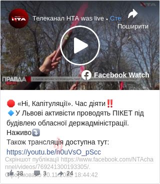 У п’ятницю, 24 жовтня, у Львові бійці російсько-української війни та активісти прийшли із пікетом під стіни обласної адміністрації з вимогою до Президента України Володимира Зеленського «не допустити капітуляції».