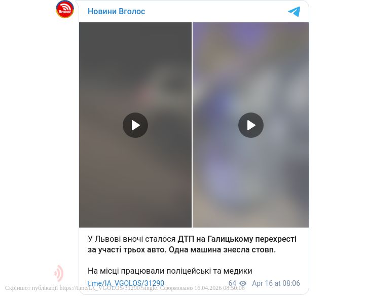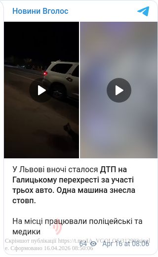 «Одна машина знесла стовп», - йдеться в повідомленні.