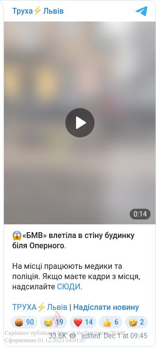 Сьогодні, 1 грудня, близько 09:00 на проспекті Свободи у Львові водій BMW в'їхав в огорожу, внаслідок чого травмувався пішохід.