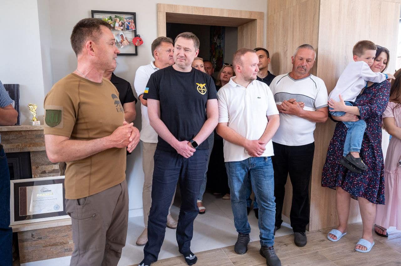 «А боєць підрозділу «Аратта» спецпідрозділу «Тимура» Головного управління розвідки Міністерства оборони України Тарас Елейко передав сім’ї у безкоштовну оренду на 25 років свій новий будинок у Суховолі. Щиро дякую Тарасові та усім, хто долучився до створення цього будинку. Бажаю здоров'я, миру і благополуччя усім членам нової великої української сім'ї», – наголосив Максим Козицький.
