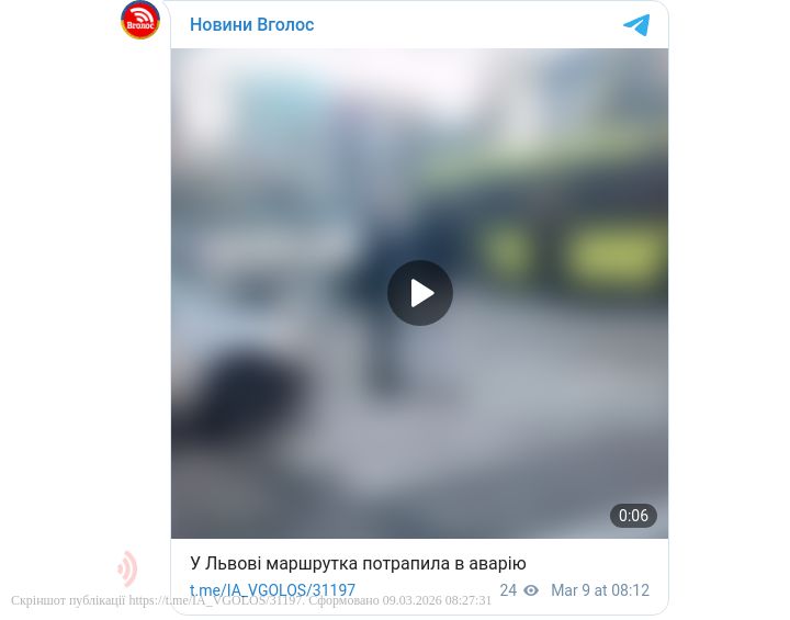 У понеділок, 9 березня, у Львові маршрутний автобус потрапив в аварію.