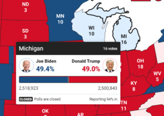 Кандидат в президенти США від Демократичної партії Джо Байден випереджає чинного главу держави Дональда Трампа в ключовому штаті Мічиган, в якому 16 вибірників.