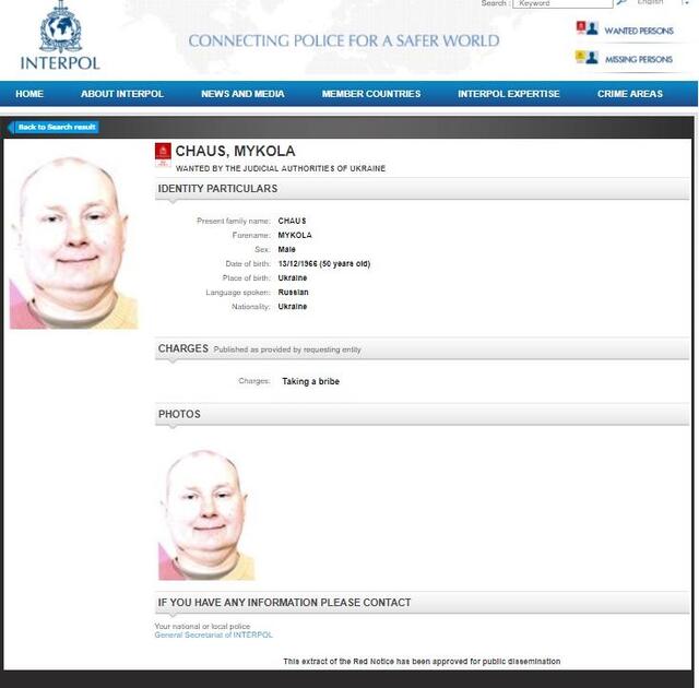 Сумнозвісний суддя-втікач Микола Чаус зник з бази Інтерполу.