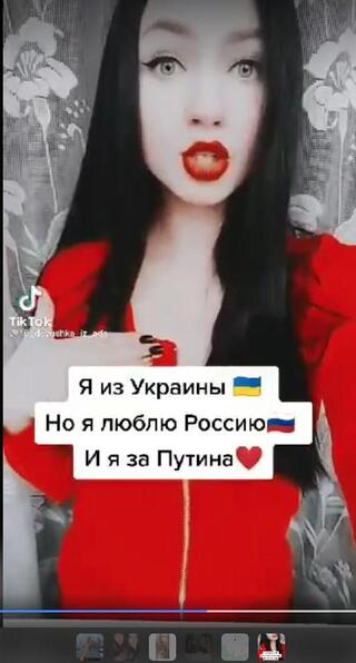 «Я з України, але я люблю Росію, і я за Путіна», - підписала одне зі своїх відео дівчина.