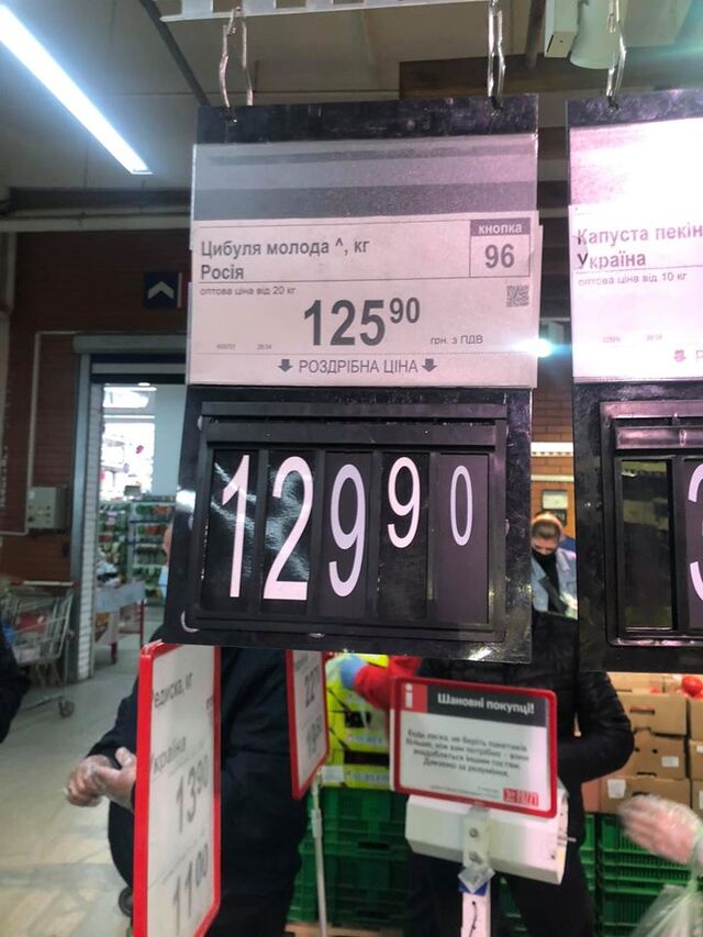 Так, відома українська продюсерка Олена Мозгова у «Фейсбуці» показала фото з одного із супермаркетів, на яких зображено цінники із овочами та відомостями, звідки їх привезли.