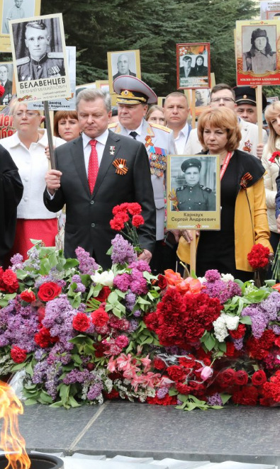 За його словами, заступник голови «Ради міністрів» на параді з нагоди Дня перемоги пройшлася з «портретом на паличці».