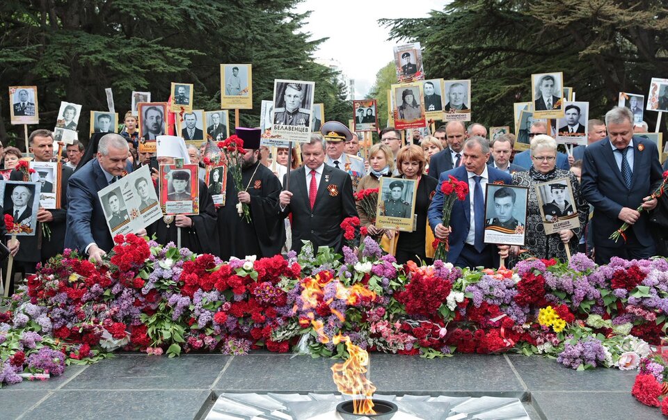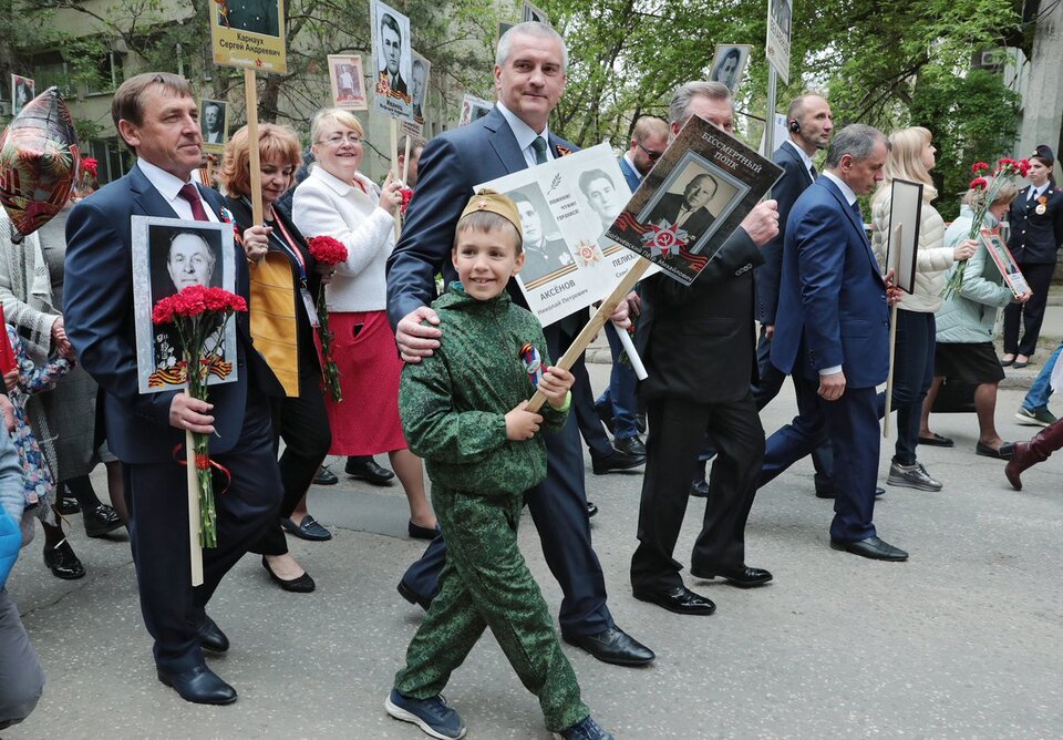На святкуванні Дня перемоги також був присутній «глава» Криму Сергій Аксьонов та інші представники окупаційної влади Росії.