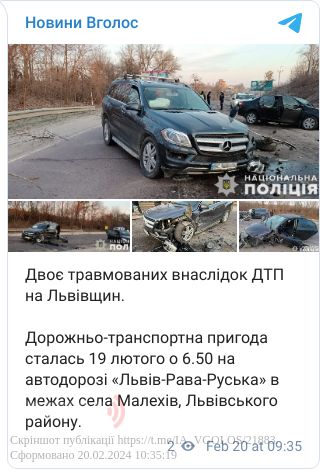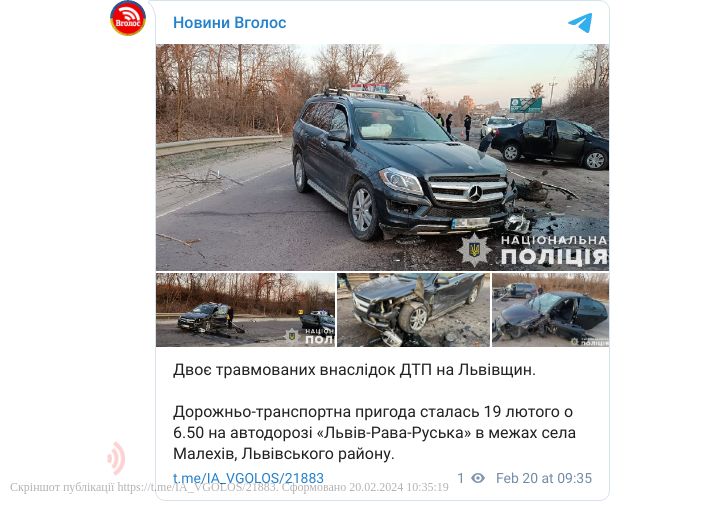 Вчора, 19 лютого на автодорозі «Львів-Рава-Руська» поблизу села Малехів, Львівського району сталася ДТП