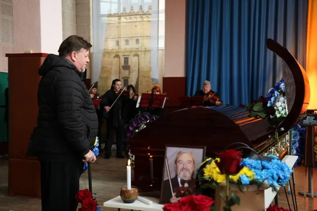Церемонія прощання з митцем відбулась у Волинській обласній філармонії, де впродовж 32 років він працював художнім керівником та диригентом Академічного камерного оркестру «Кантабіле».
