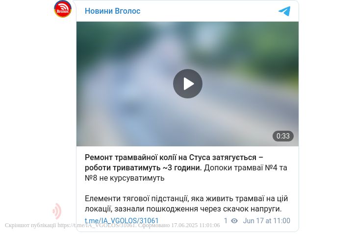 За інформацією ЛКП «Львівелектротранс»,на вул. Стуса через скачок напруги пошкоджені елементи тягової підстанції, яка живить трамваї на цій локації.