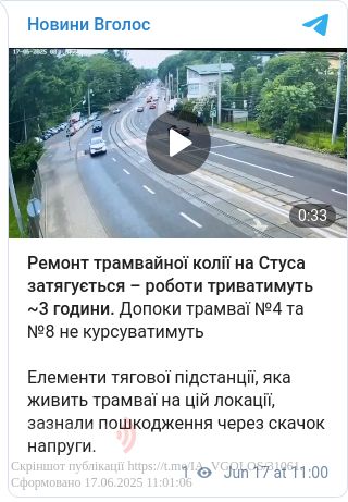 У вівторок, 17 червня, на вул. Стуса через скачок напруги пошкоджені елементи тягової підстанції. Тривають відновлювальні роботи.