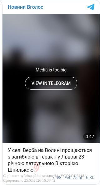 Дівчину поховають 25 лютого на кладовищі в селі Верба на Волині.