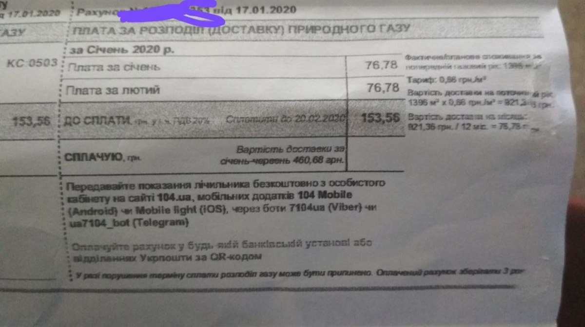 Також постачальники газу вказують на квитанції, що рекомендується оплачувати відповідну послугу до 20 числа місяця одним платежем одразу за півріччя, щоб зекономити кошти на комісії.