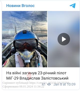 Під час бойового завдання на війні загинув 23-річний льотчик 114 бригади тактичної авіації Повітряних сил ЗСУ Владислав Залістовський на позивний Blue Helmet.