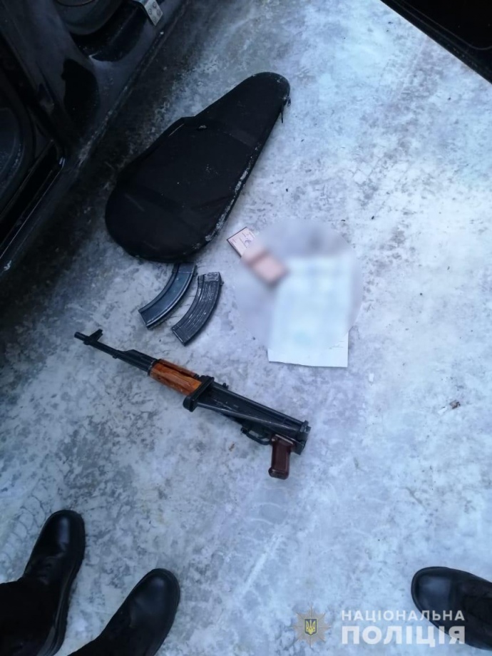 Також у мікроавтобусі правоохоронці знайшли зброю. Зловмисників затримали.
