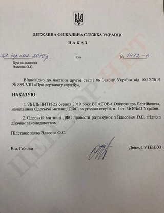 В указі зазначається, що Власова звільнили за згодою сторін на підставі його заяви.