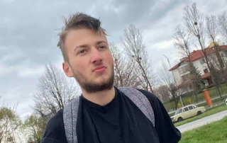Опис: очі блакитні, волося русяве, має борідку, зріст 193 см, сутулий, худої тілобудови, футболка чорного кольору, штани білого кольору, кросівки сірого кольору на плечах сірий р'юкзак, як на фото.