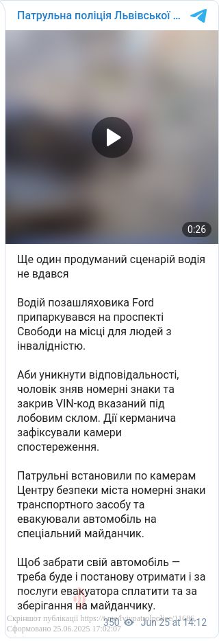 Завдяки записам з камер вдалося встановити особу водія і номерні знаки машини. Автомобіль евакуювали на спеціальний штрафмайданчик.