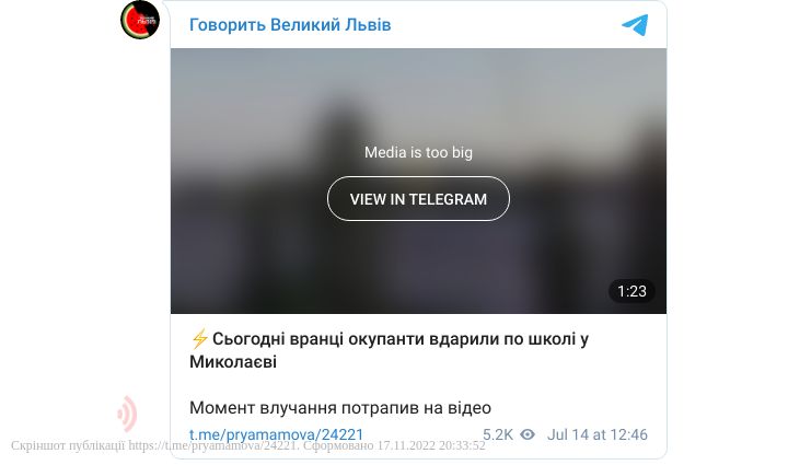 Сьогодні зранку, 14 липня, російські окупанти завдали ракетного удару по Миколаєву. Одна із ворожих ракет потрапила в навчальний заклад та зруйнувала його.